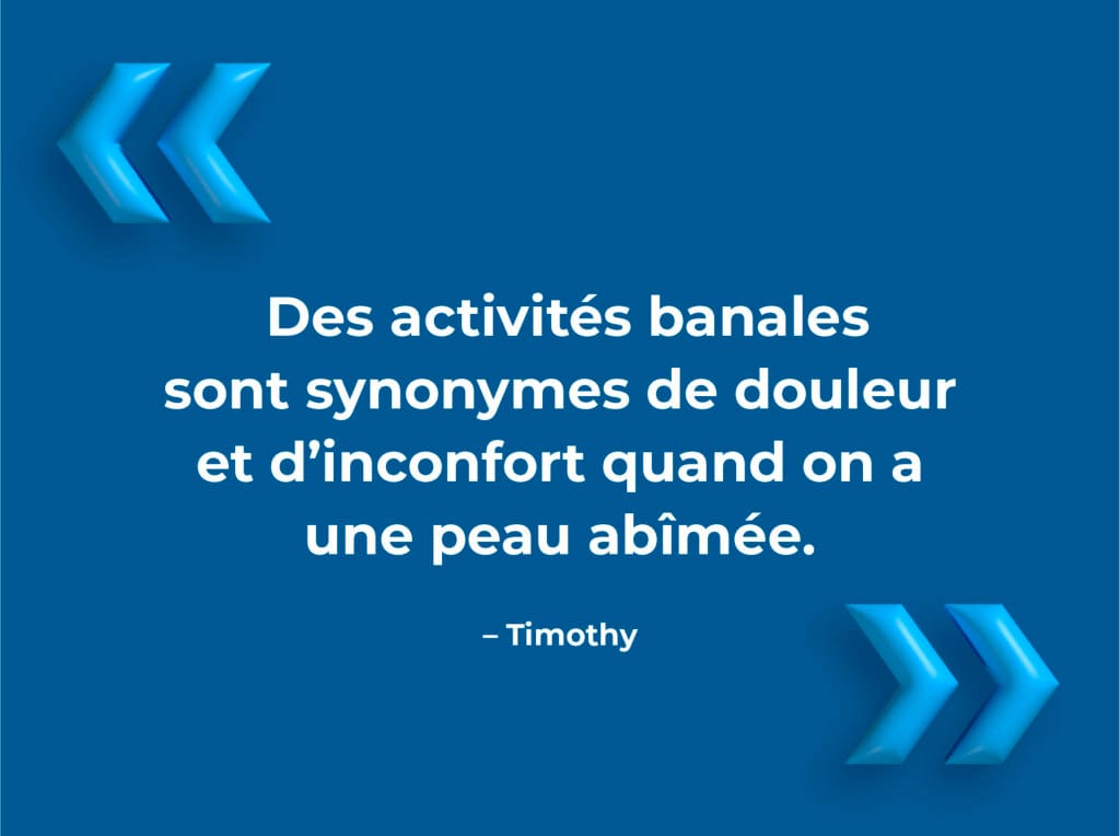 Désireux de faire une différence, Timothy a communiqué avec la SCE pour raconter son parcours avec l’eczéma. Il voulait faire connaître les répercussions émotionnelles, physiques et sociales de l’eczéma, tout en donnant de l’espoir aux personnes qui en sont touchées.