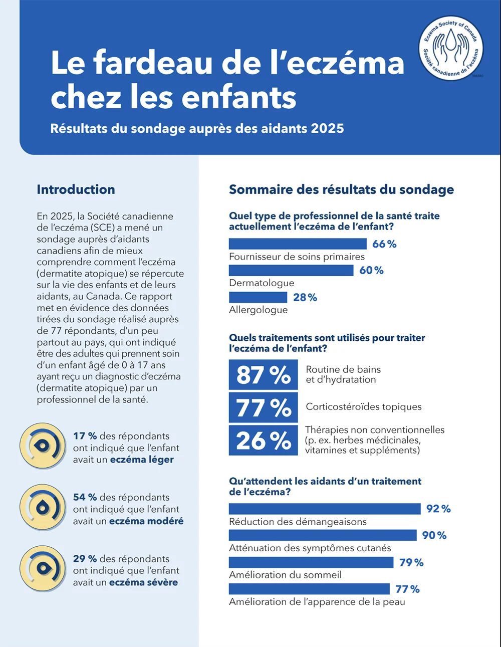 La SCE a voulu connaître les répercussions de l’eczéma sur la vie des enfants canadiens. Voyez les faits saillants du sondage et le rapport ici.